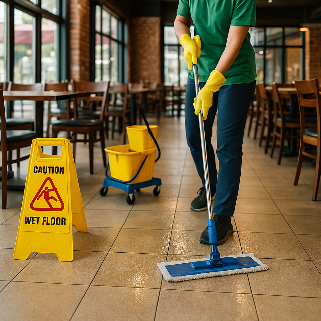 We sweep, vacuum, and mop all flooring areas, including the dining room, kitchen, staff areas, and entryways. Grease, spills, and tracked-in dirt are removed to maintain safety and cleanliness.