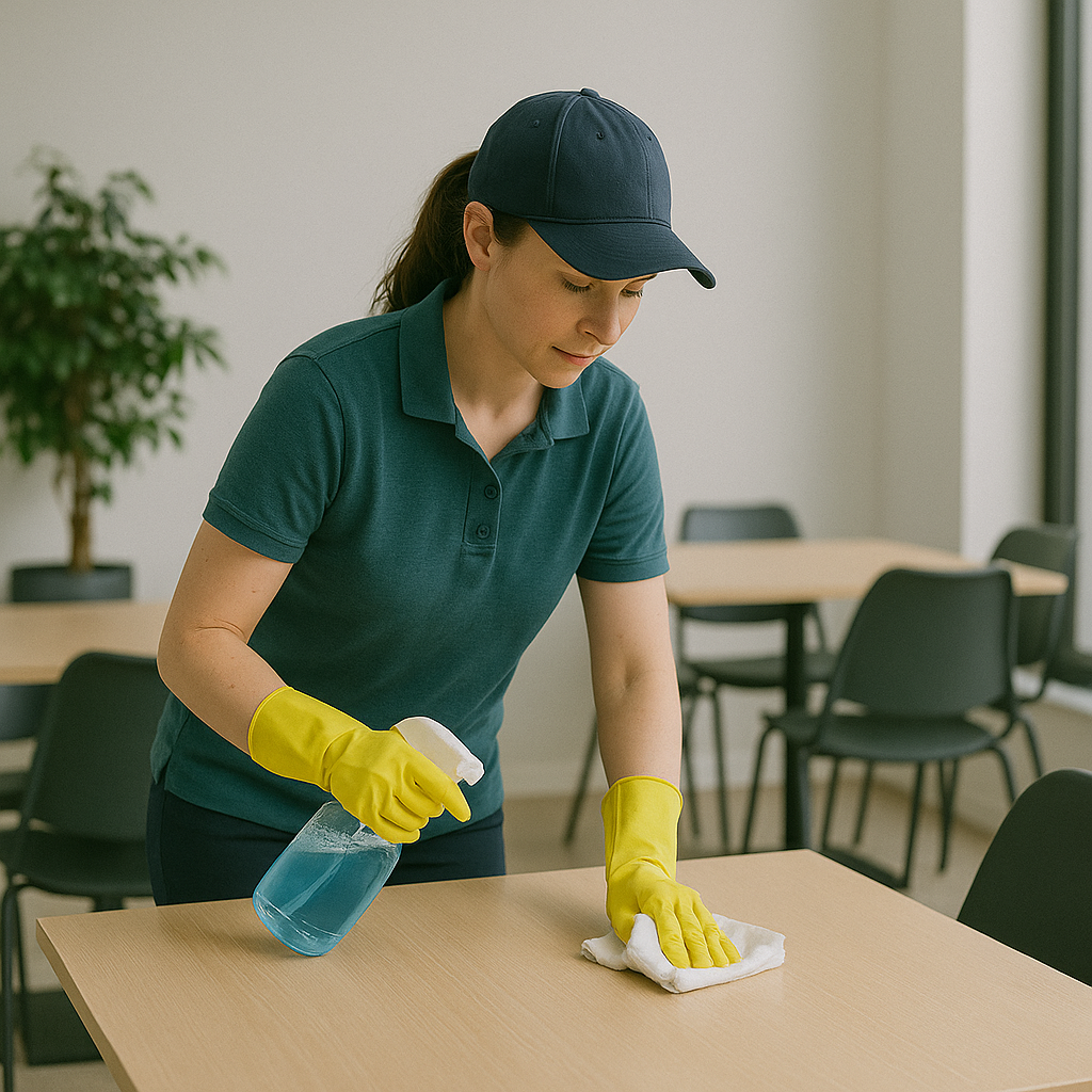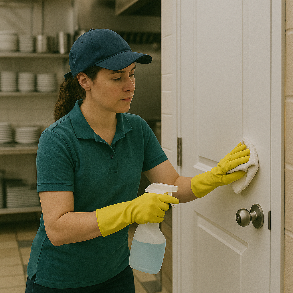 Back-of-house spaces like break rooms, changing areas, and staff entrances are cleaned to promote a tidy, safe, and professional work environment.